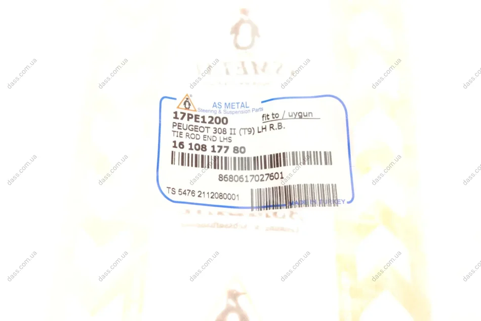 Наконечник тяги рульової (L) Citroen C4 Picasso 13-/C5 Aircross/Berlingo/Peugeot 508 18-/5008/308 13- ASMetal 17PE1200