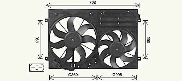 AVA VW Вентилятор радіатора (з дифузором) Audi A1/3, Caddy III, Golf V,VI, Jetta iV, Passat, Tiguan, Skoda Fabia II, Octavia II Ava cooling VN7551