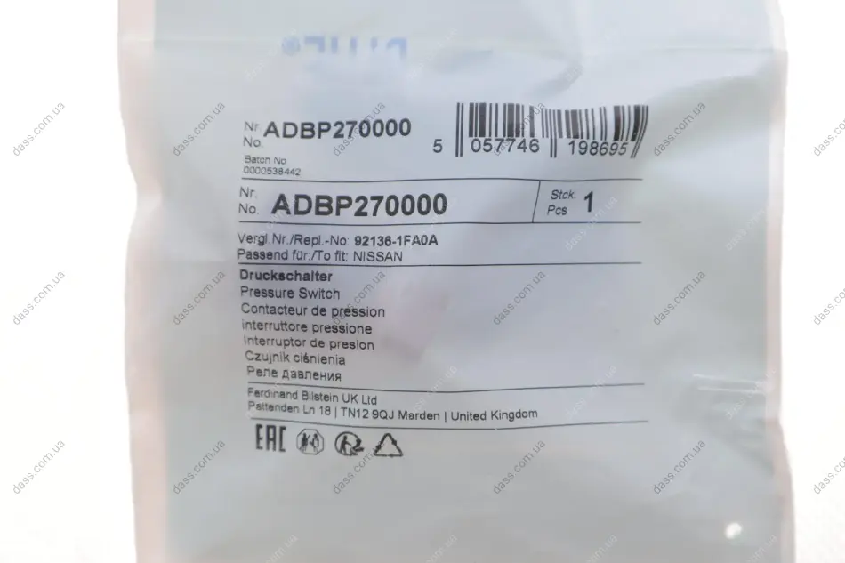 Датчик тиску кондиціонера Nissan Juke/Qashqai/X-Trail 1.0-4.0 01- Blue Print ADBP270000