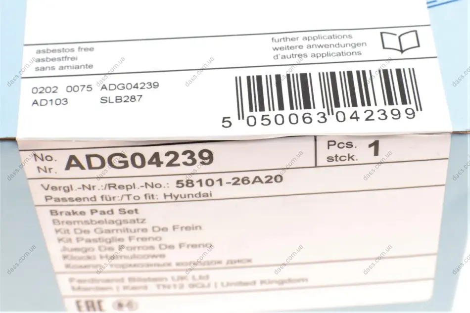 BLUE PRINT HYUNDAI гальмів.колод.передн.Santa Fe, Ssangyong Rexton II,Kyron,Actyon Blue Print ADG04239