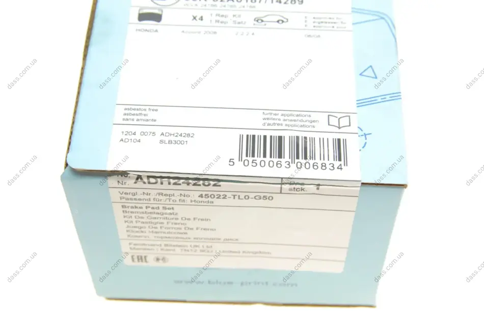 Колодки гальмівні (передні) Honda Accord VIII 07-/IX 12- (Akebono) Blue Print ADH24282