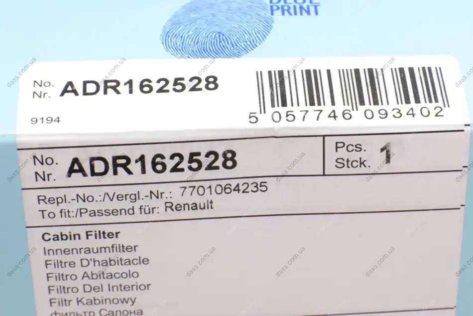 Фільтр салону Renault Megane II 02- (вугільний) Blue Print ADR162528