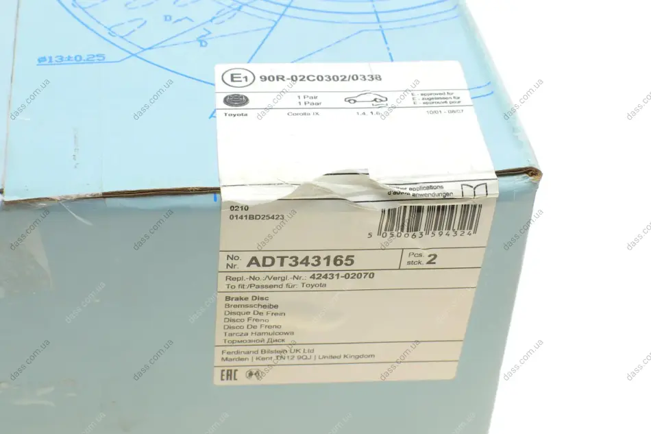 Диск гальмівний (задній) Toyota Corolla 02-13 (258x9) (з покриттям) Blue Print ADT343165