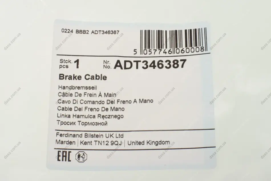 Трос ручника (задній) (R) Toyota Auris 07- (1920/1745mm) Blue Print ADT346387