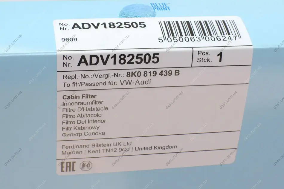 Фільтр салону Audi A4/A6 1.8-4.2TFSI 07- (вугільний) Blue Print ADV182505