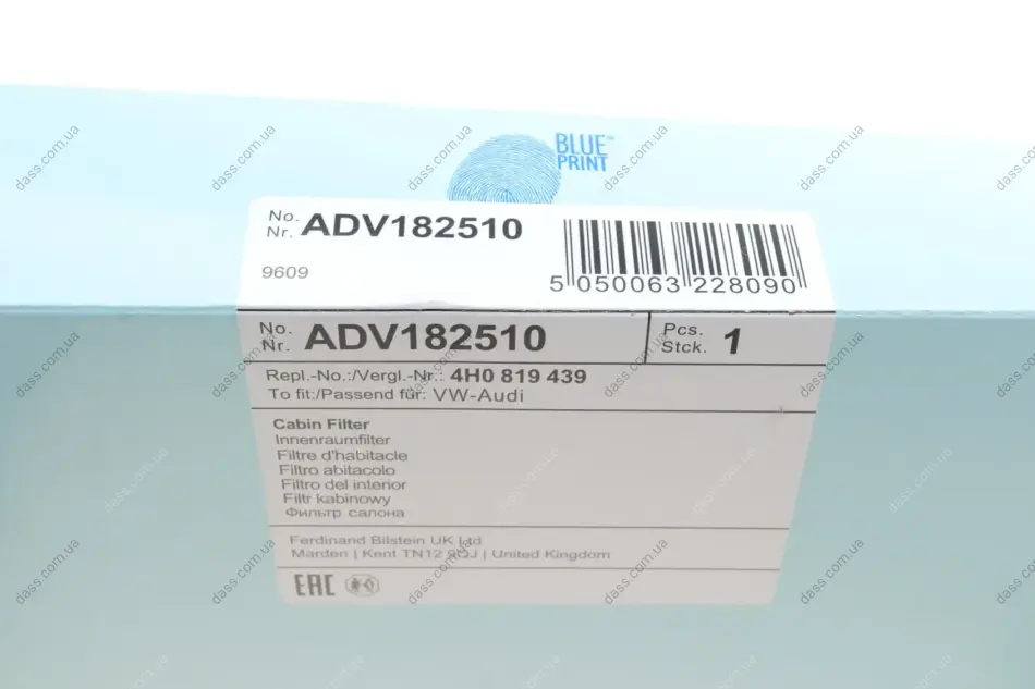 Фільтр салону Audi (вир-во Blue Print) Blue Print ADV182510