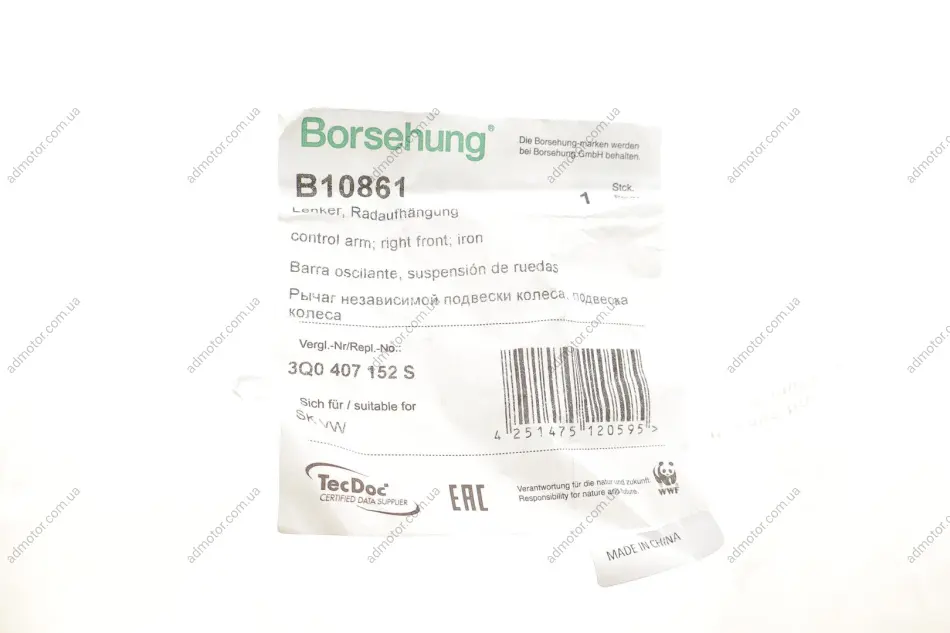 Важіль підвіски (передній/знизу) (R) Skoda Superb III/Kodiaq/Karoq/VW Passat B8/Touran 14- (OE VAG) Borsehung B10861
