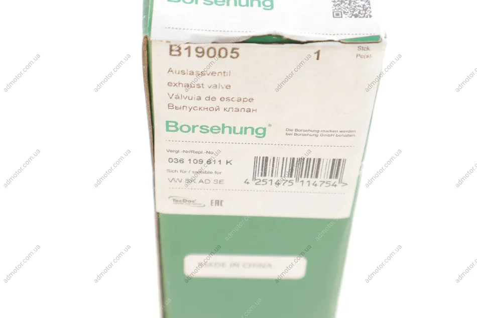 Клапан (випуск) VW Caddy II/III/Golf 1.4/1.6FSI/TSI 00- (OE VAG) Borsehung B19005