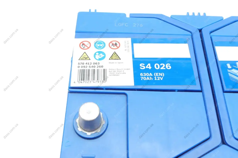 Акумуляторна батарея 70Ah/630A (261x175x220/+R) S4 Азія Bosch 0092S40260