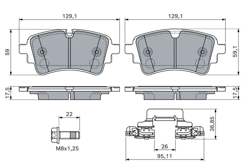BOSCH AUDI колодки гальмівні задн. A4 2.0 16-, A5 1.4 16-, VW BOSCH 0986460174