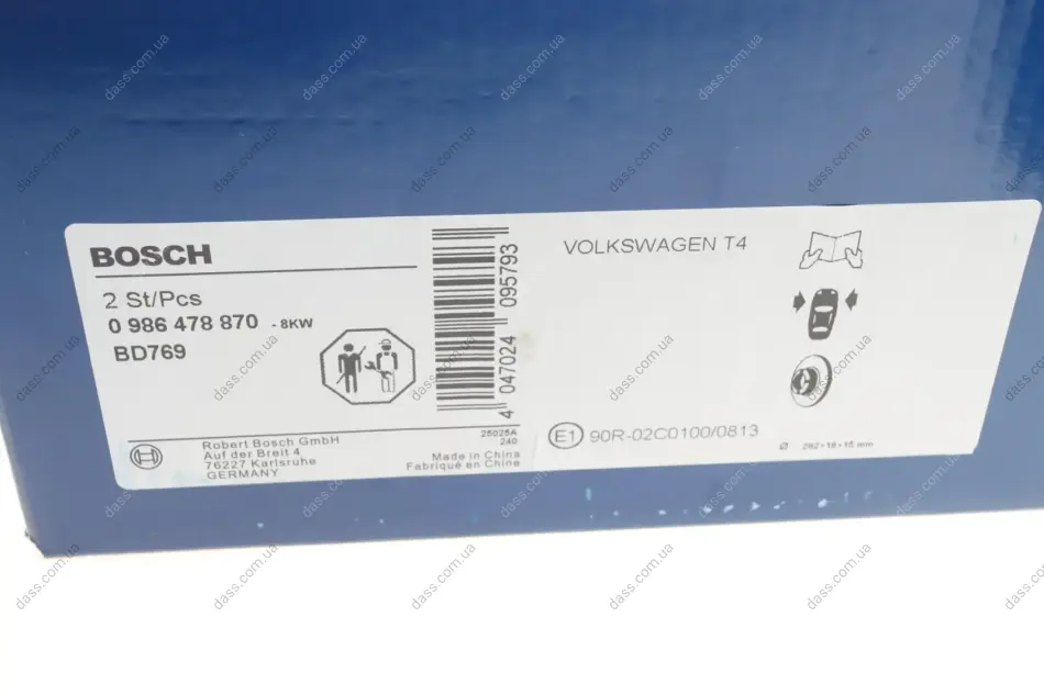 BOSCH VW Диск гальмівний перед. T4 (282*18) Bosch 0986478870