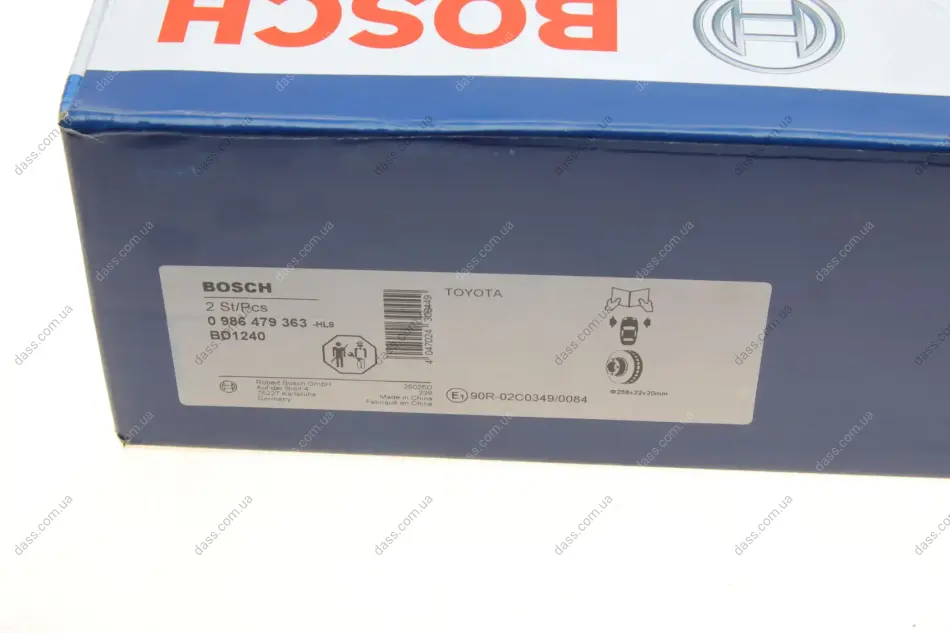 Диск гальмівний (передній) Toyota Yaris 1.0-1.5 10- (258x22) Bosch 0986479363