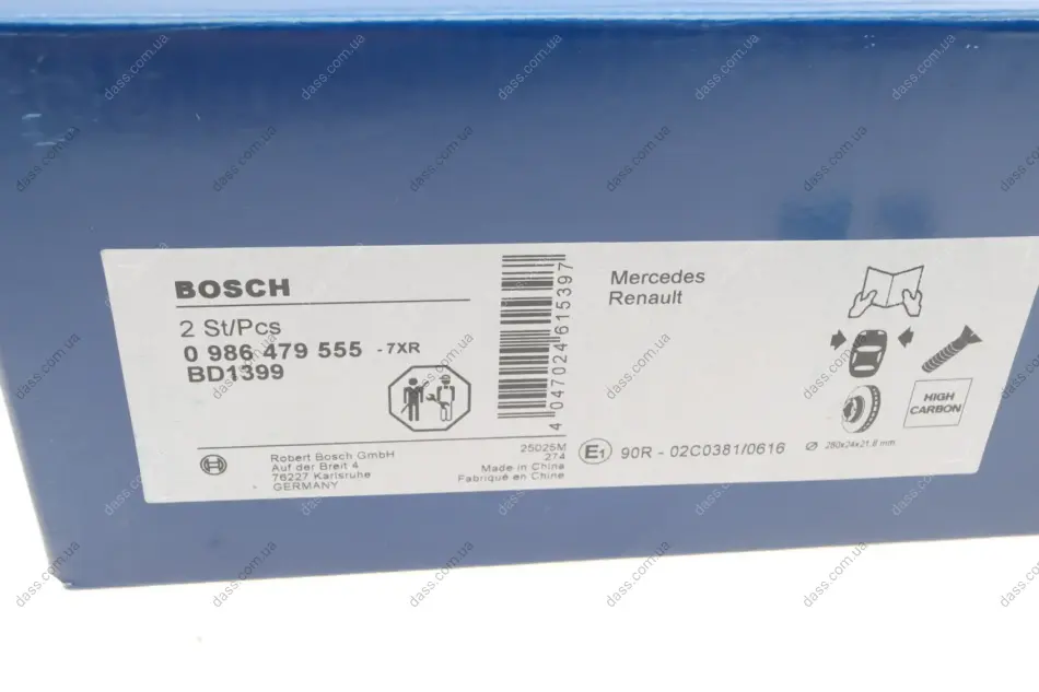 BOSCH HIGH CARBON RENAULT диск гальмівний передній (5-відв.) Kangoo 08- Bosch 0986479555