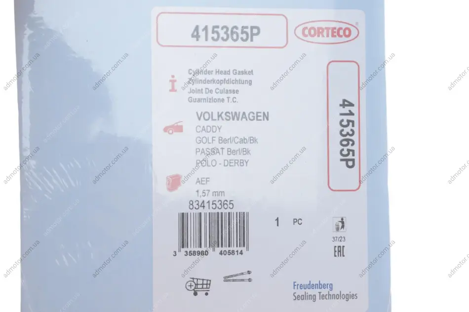 Прокладка ГБЦ VW Caddy II 1.9D 91-04 1.57mm 2 метки CORTECO 415365P