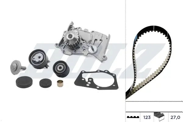 DOLZ RENAULT К-кт. ГРМ (помпа + ремень + 4 ролика + крепеж) CLIO III 1.6 07-12, GRAND SCENIC II 1.6 04-06, CLIO III Grandtour 1.6 07-12, LAGUNA III 1.6 07-15, MEGANE II 1.6 03- DOLZ KD073
