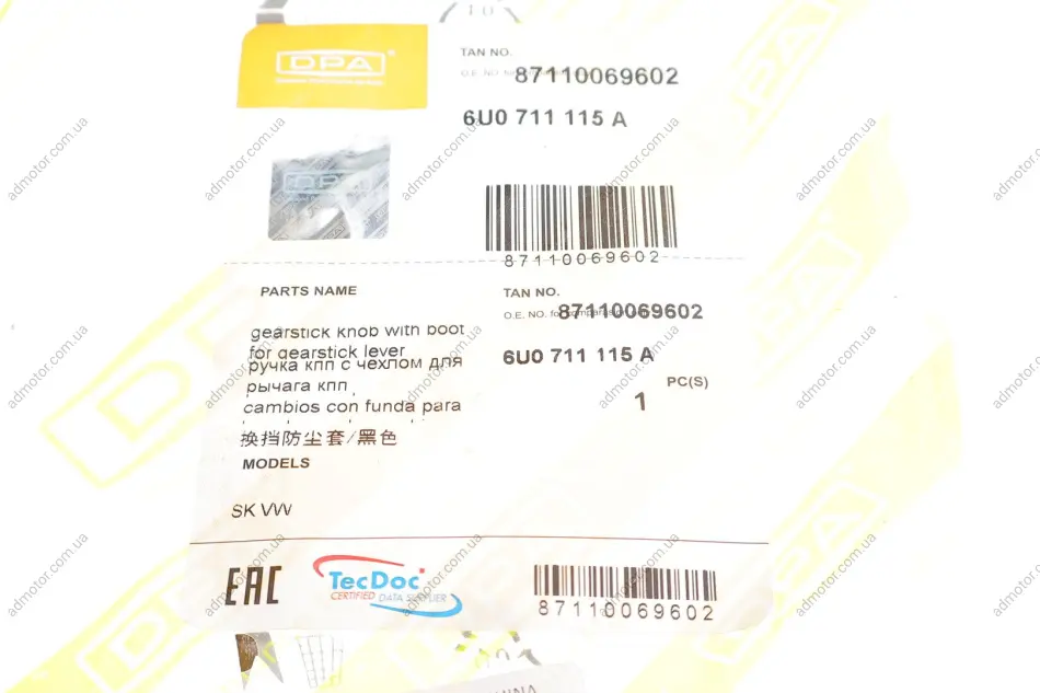 Чохол важеля КПП VW Caddy II 96-00 DPA 87110069602