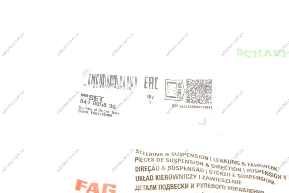 FAG – ексклюзивний постачальник підшипників для багатьох автомобільних концернів. Компанія об'єдналася в INA, яка також входить до конгломерації Schaeffler Group. У каталогах FAG можна знайти наступне: підшипники всіх типів, готові комплекти підшипників для авто конкретних моделей, нестандартні підшипники. За численними відгуками водіїв про підшипники FAG – це найкраще, що можна купити для своєї машинки. Так, ціна кусається в порівнянні з іншими менш іменитими брендами, але ти купуєш, фактично, оригінал, але за дешевшою ціною.