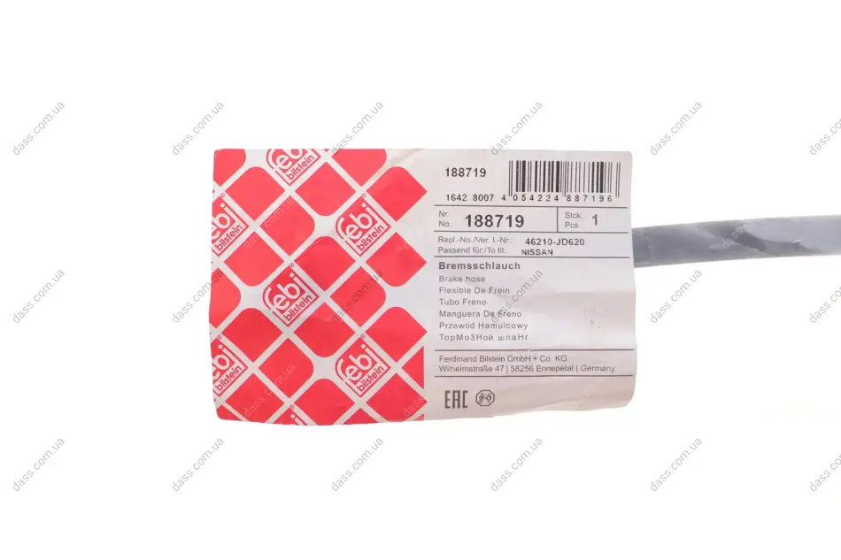 Шланг гальмівний (задній) Nissan Qashqai 07-13 (R) (L=253mm) Febi Bilstein 188719