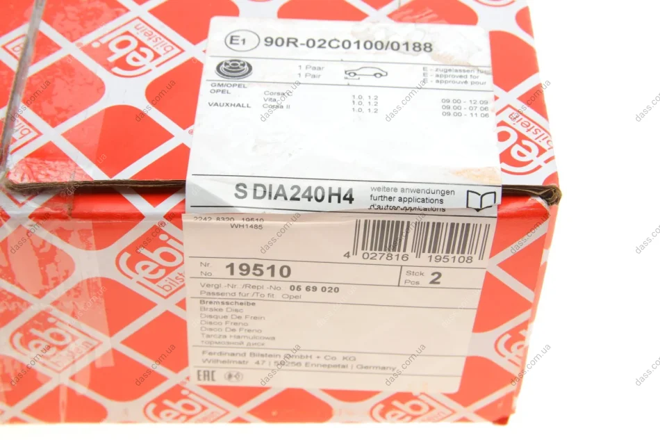 Диск гальмівний (передній) Opel Corsa C 00-09 (240x11) Febi Bilstein 19510