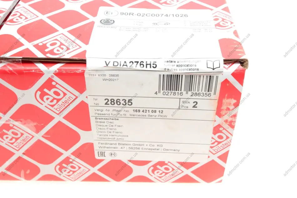 Диск гальмівний (передній) MB A-class (W169) /B-class (W245) 05-12 (276x22) FEBI BILSTEIN 28635