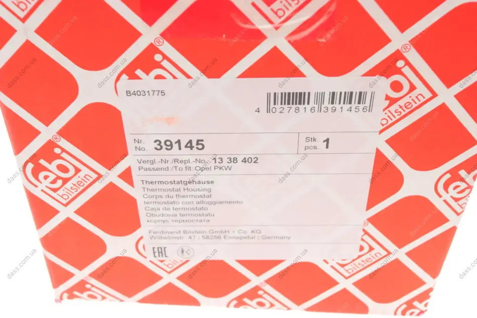 Термостат Opel Astra/Vectra 1.6/1.8 00- (105°) (з корпусом) Febi Bilstein 39145