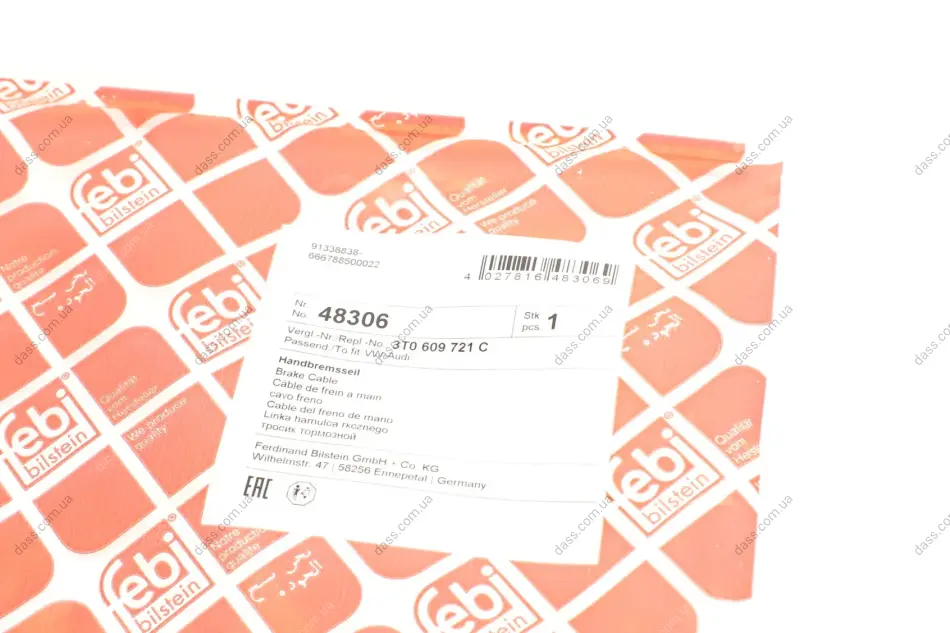Трос ручника (задній) Skoda Superb 08-15 (1615/805mm) Febi Bilstein 48306