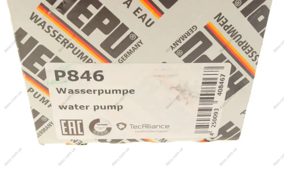 Насос охолоджуючої рідини, з ущільненням CITROEN BERLINGO, BERLINGO/MINIVAN, C2, C2 ENTERPRISE, C3 I, C3 II, C3 PLURIEL, NEMO, NEMO/MINIVAN, SAXO, XSARA, XSARA/HATCHBACK 1.0-1.4LPG 04.93- Hepu P846