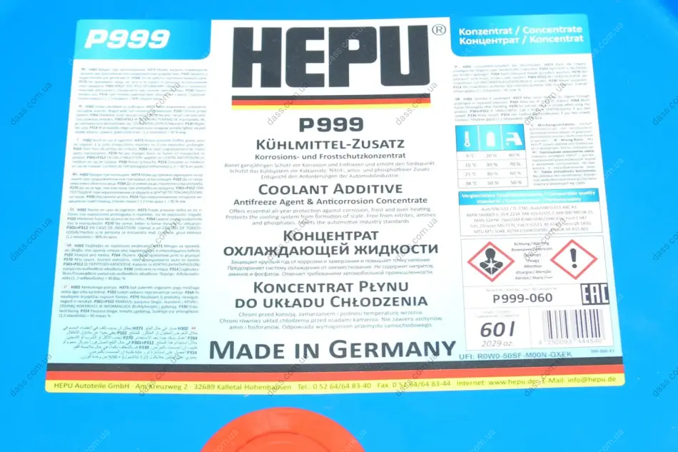 Антифриз (синій) G11 (60L) (W G011 A8C A1) (концентрат) Hepu P999060