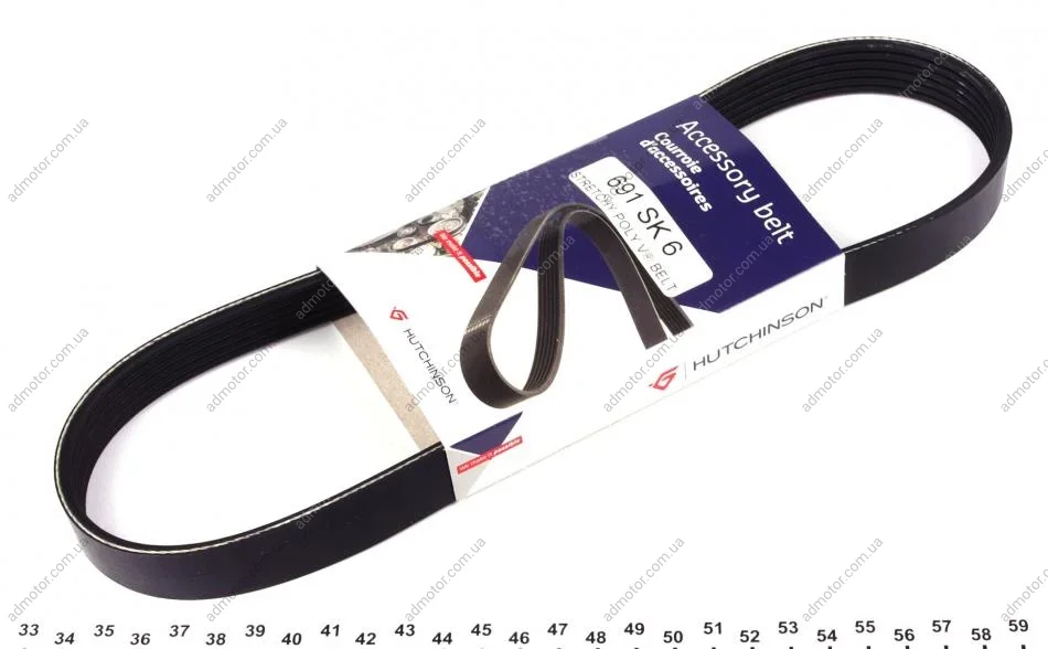 Ремінь генератора MB Sprinter 3.0CDI 07- (+AC) HUTCHINSON 691SK6