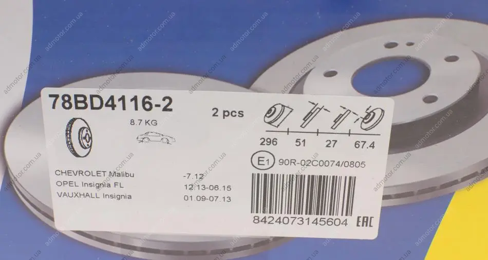 Диск гальмівний (передній) Opel Insignia A 08-/Chevrolet Aveo 05- (296x30) (з покриттям) (вентильований) ICER 78BD41162