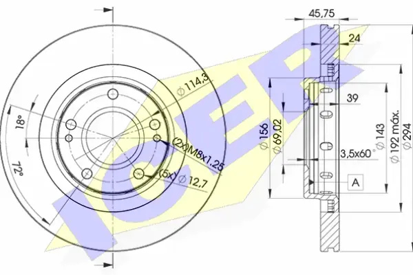 Диск гальмівний (передній) Mitsubishi Outlander 02-/Lancer/Peugeot 4007 07- (294x24) (з покр.)(вент.) ICER 78BD59242