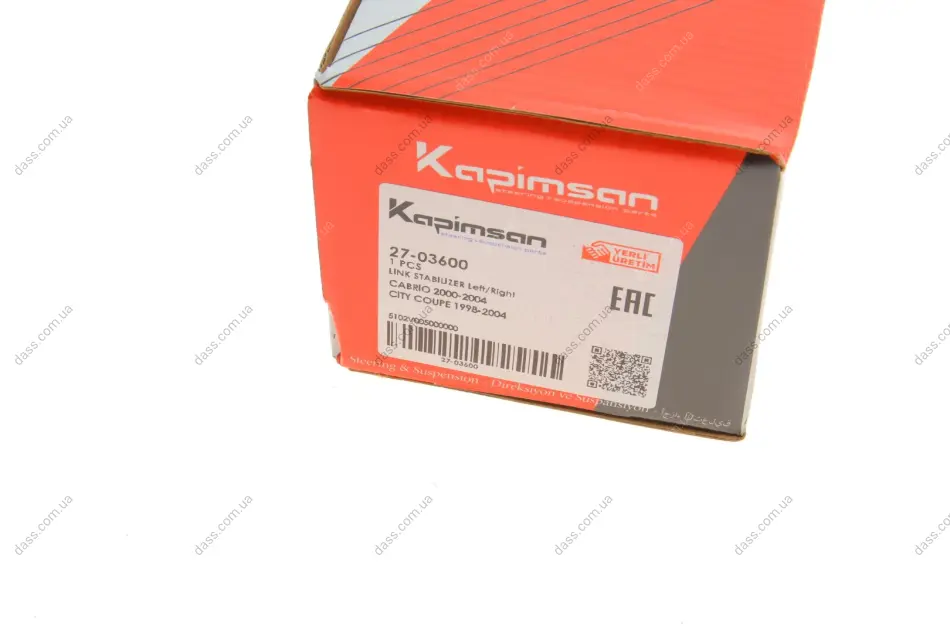 KAPIMSAN – турецька компанія, що виготовляє запчастини для легкових автомобілів, бусів та мінівенів. Каталог Kapimsan містить такі запчастини, як наконечники рульової тяги, кульові опори, подушки двигуна та амортизатора, важелі підвіски, сайлентблоки, рульові тяги та тяги стабілізатора.