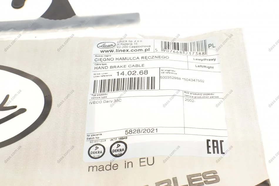 Трос ручника Iveco Daily III 2.3D 02-07 (1265/920 мм) LINEX 140268