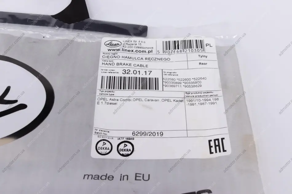 Трос ручника Opel Astra F/Kadett E 84-05 LINEX 320117