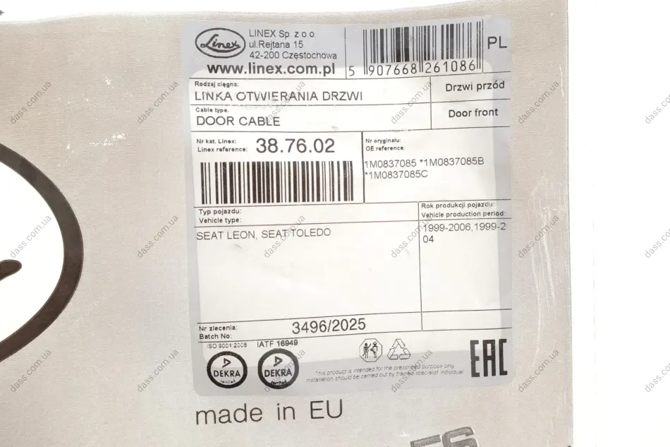 Трос дверей (передніх) Seat Leon/Toledo 98-06 LINEX 387602