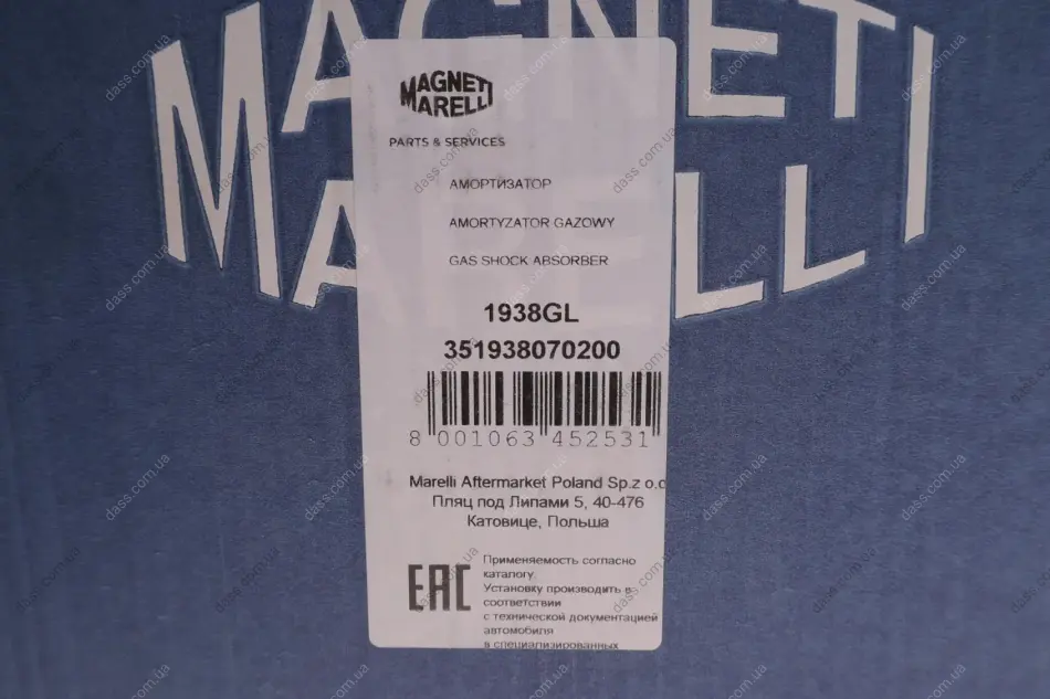 Амортизатор (передній) Fiat Punto/Grande Punto 1.3-1.6 08- (L) Magneti Marelli 351938070200