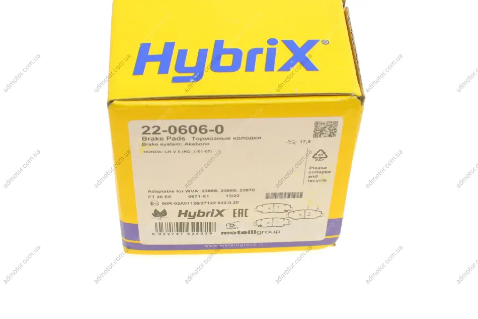 Колодки гальмівні (передні) Honda Accord VII 03-08/CR-V II 01-07/CR-V IV 13- Metelli 2206060
