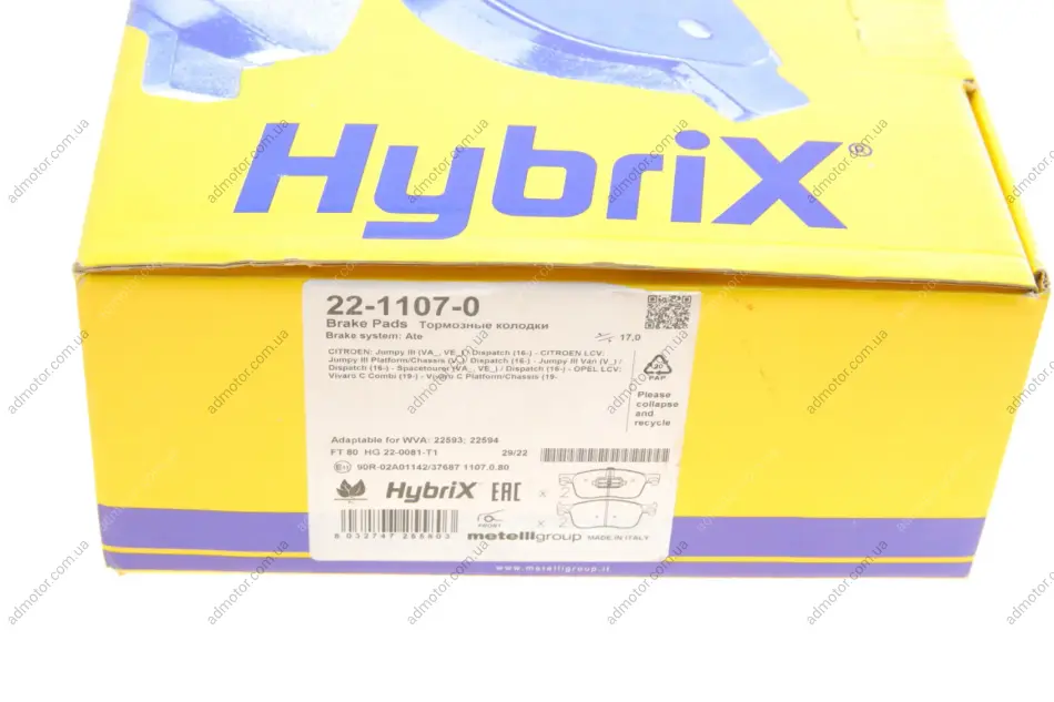 Колодки гальмівні (передні) Citroen Jumpy/Peugeot Expert 16- Metelli 2211070