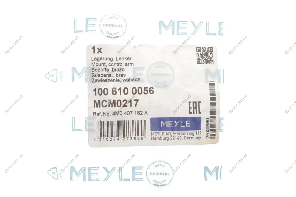 Meyle– відомий німецький бренд. Компанія була заснована в 1958 році, більш ніж за 60 років фірма пройшла шлях від простого експортера деталей до великої компанії зі своїми виробничими потужностями. Основне виробництво зосереджено у Китаї. Все робиться на німецькому устаткуванні під контролем німецьких інженерів. Головний офіс компанії знаходиться у місті Гамбург (Німеччина). Основний асортимент Meyle – деталі для Європейських марок авто: втулки, сайлентблоки, підшипники, стійки стабілізатора, амортизатори, демпфери, важелі, насоси, елементи кермового керування, деталі зчеплення. Преміум лінійка продукції cіндексом – HD(hard drive) позиціонується як відповідна якості оригіналу.