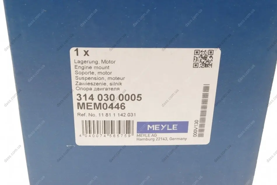 Meyle– відомий німецький бренд. Компанія була заснована в 1958 році, більш ніж за 60 років фірма пройшла шлях від простого експортера деталей до великої компанії зі своїми виробничими потужностями. Основне виробництво зосереджено у Китаї. Все робиться на німецькому устаткуванні під контролем німецьких інженерів. Головний офіс компанії знаходиться у місті Гамбург (Німеччина). Основний асортимент Meyle – деталі для Європейських марок авто: втулки, сайлентблоки, підшипники, стійки стабілізатора, амортизатори, демпфери, важелі, насоси, елементи кермового керування, деталі зчеплення. Преміум лінійка продукції cіндексом – HD(hard drive) позиціонується як відповідна якості оригіналу.