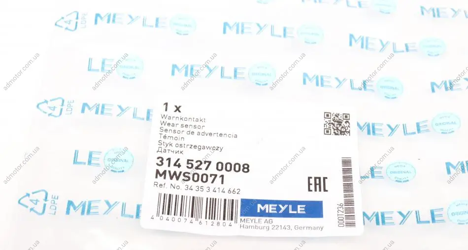Датчик зносу гальмівних колодок (передніх) BMW X3 (E83) 3.0sd 06-08 (L=745mm) MEYLE 3145270008