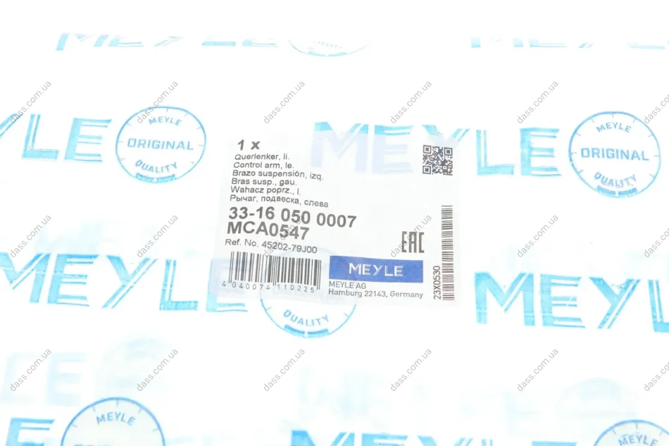 Meyle– відомий німецький бренд. Компанія була заснована в 1958 році, більш ніж за 60 років фірма пройшла шлях від простого експортера деталей до великої компанії зі своїми виробничими потужностями. Основне виробництво зосереджено у Китаї. Все робиться на німецькому устаткуванні під контролем німецьких інженерів. Головний офіс компанії знаходиться у місті Гамбург (Німеччина). Основний асортимент Meyle – деталі для Європейських марок авто: втулки, сайлентблоки, підшипники, стійки стабілізатора, амортизатори, демпфери, важелі, насоси, елементи кермового керування, деталі зчеплення. Преміум лінійка продукції cіндексом – HD(hard drive) позиціонується як відповідна якості оригіналу.