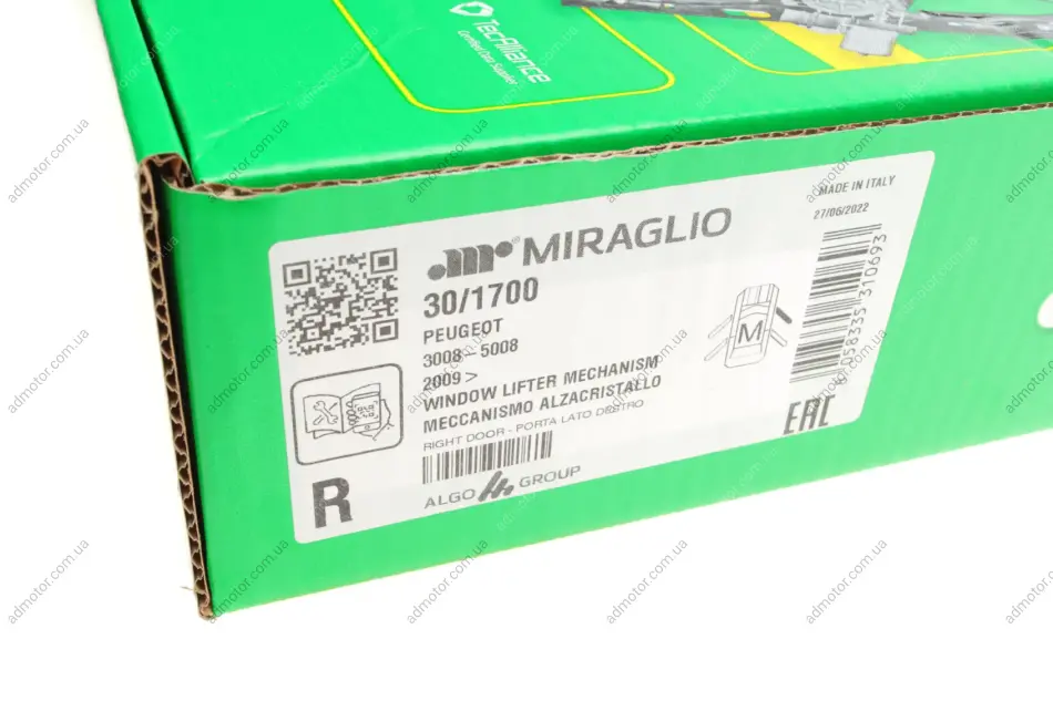 Бренд MIRAGLIO на рівні з іншими трьома брендами LIFT TEK, ELECTRIC-LIFE І PMM належить компанії ALGO GROUP, яка виробляє та постачає склопідіймачі та дверні ручки та засувки для автоскладальних підприємств та на ринок післяпродажного обслуговування автомобілів. Компанія утворилась шляхом злиття кількох компаній і, загалом маючи понад 60 років досвіду, є лідером на європейському ринку. Зараз в Європі діє дві фабрики - в Італії та Польщі