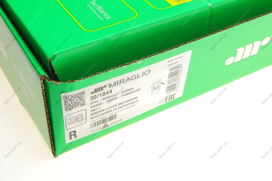 Склопідіймач (передній) Renault Trafic/Opel Vivaro 01- (R) (електро) (без моторчика) MIRAGLIO 301844