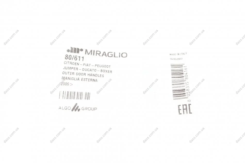 Бренд MIRAGLIO на рівні з іншими трьома брендами LIFT TEK, ELECTRIC-LIFE І PMM належить компанії ALGO GROUP, яка виробляє та постачає склопідіймачі та дверні ручки та засувки для автоскладальних підприємств та на ринок післяпродажного обслуговування автомобілів. Компанія утворилась шляхом злиття кількох компаній і, загалом маючи понад 60 років досвіду, є лідером на європейському ринку. Зараз в Європі діє дві фабрики - в Італії та Польщі