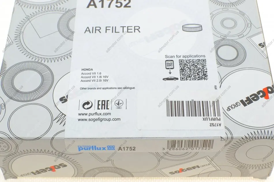 PURFLUX фільтр повітряний HONDA Accord VII 98-03 (274*164*42) Purflux A1752
