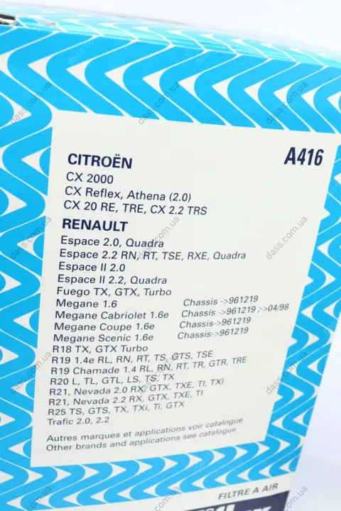 Фільтр повітряний Renault 19/ 20/ 21/ 22 Megane I 1.6e/1.6i -99 Purflux A416