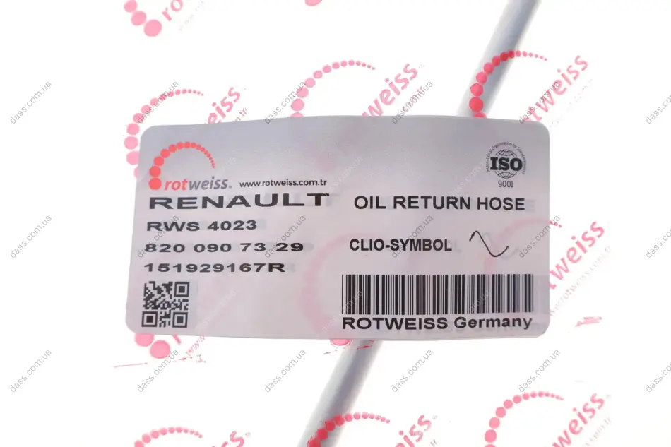 Трубка подачі оливи до турбіни Renault Kangoo/Megane III/Dokker 1.5 dCi 05- (всередині OE) Rotweiss RWS4023