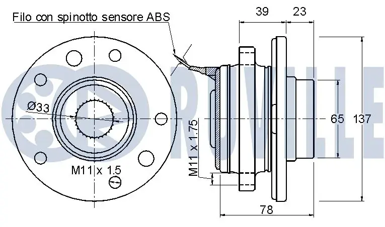 RUVILLE FIAT підшипник маточини з ABS Croma, OPEL Signum,Vectra C SAAB RUVILLE 221116