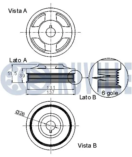 RUVILLE CHEVROLET демпфер крутильних коливань Aveo 1,4 06- Ruville 520052